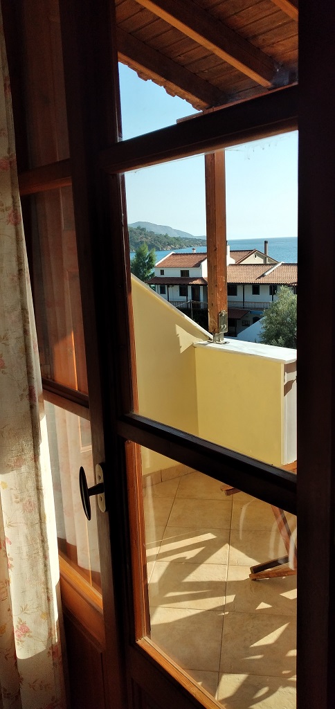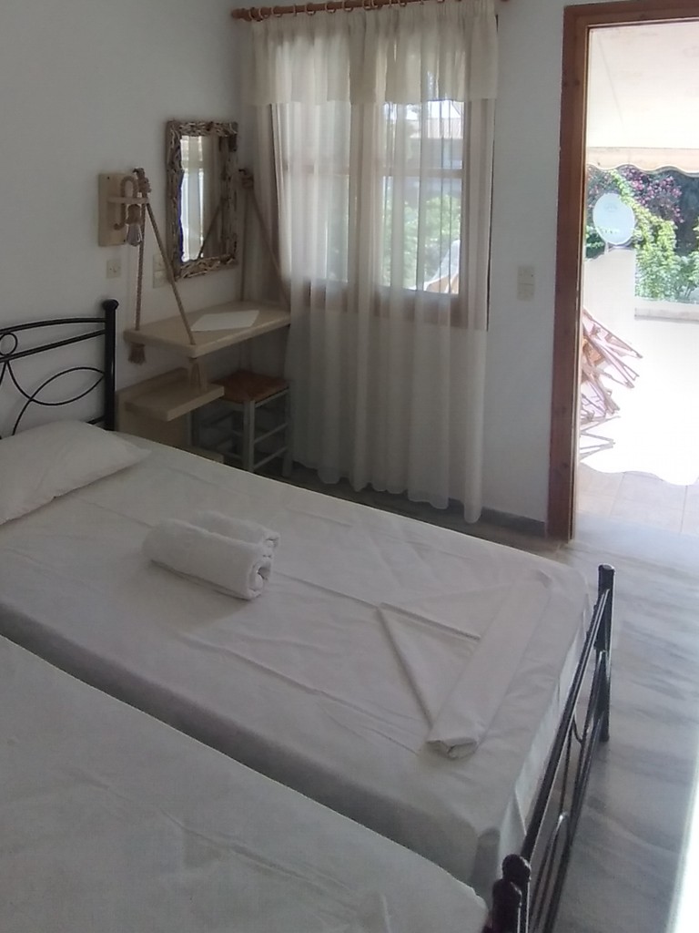 View:Offering Aegean Sea or garden views, this air-conditioned studio opens to a furnished balcony or a terrace. It has a kitchenette with dining table and a mini oven with cooking hobs.